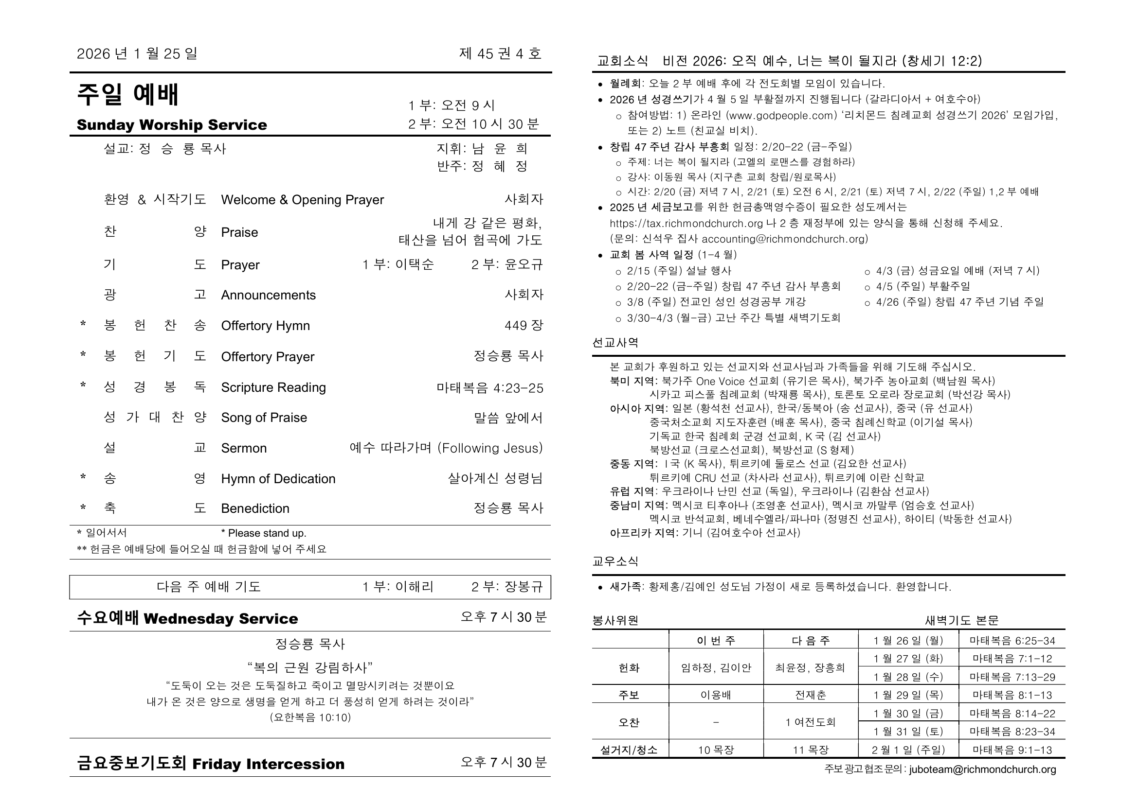 [주보] 2026년 1월 25일